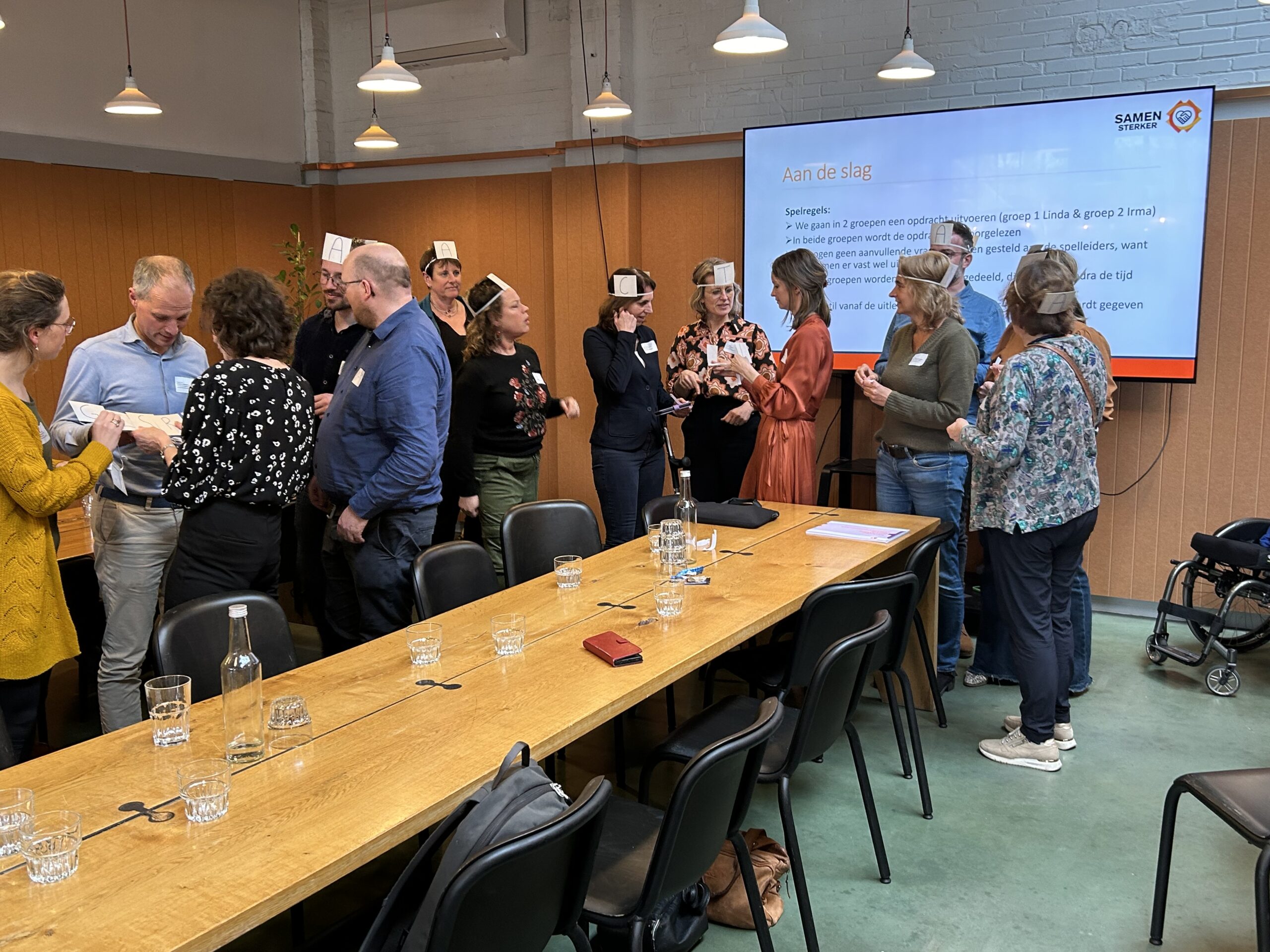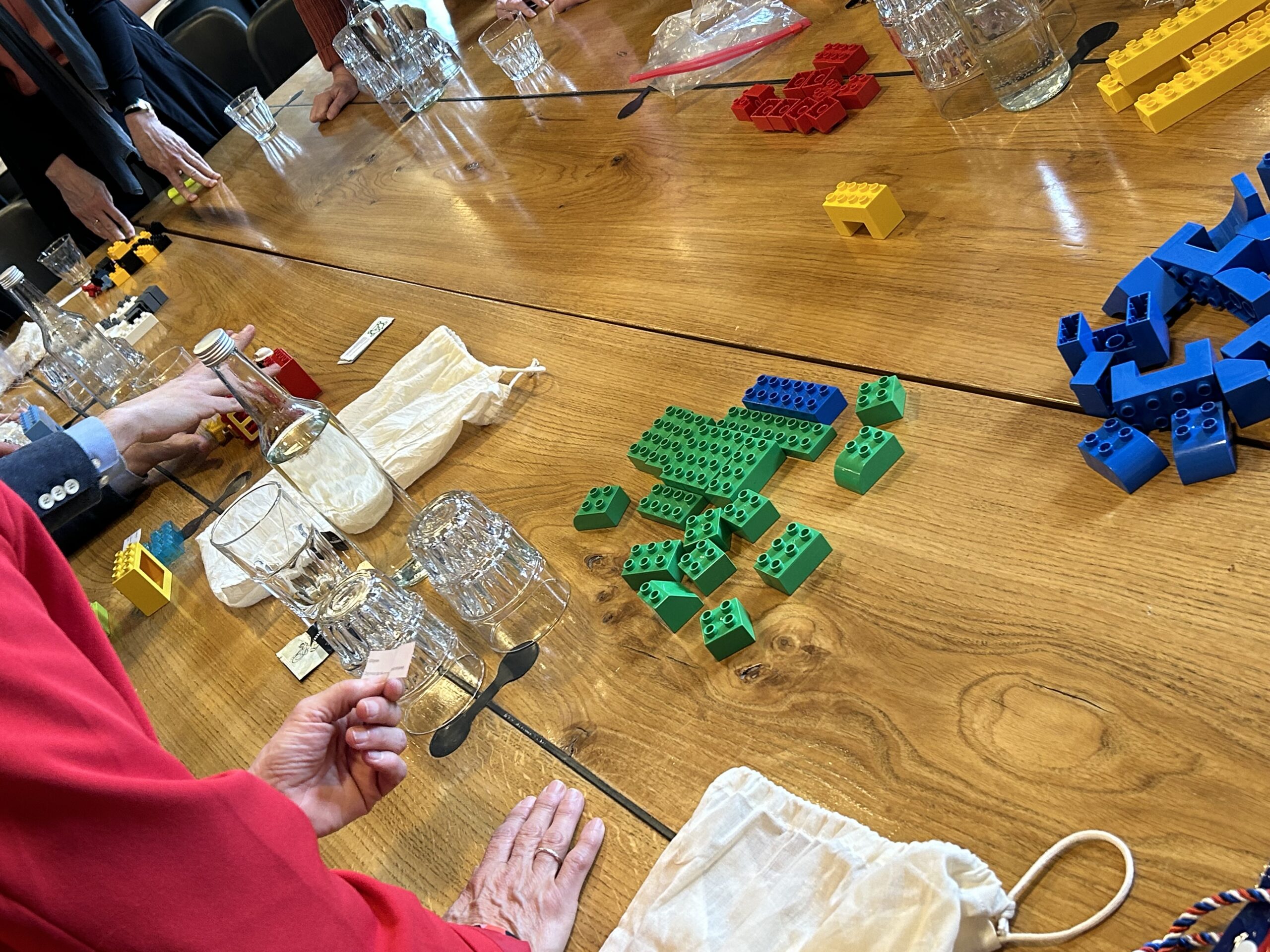 Dat samenwerken nog best een uitdaging kan zijn, kwam goed naar voren in de spelopdrachten die de deelnemers kregen. Een groep kreeg de opdracht gezamenlijk een bouwwerk te maken van 140 duploblokjes en tegelijkertijd een persoonlijke opdracht goed uit te voeren. De tweede groep moest met elkaar 6 woorden vormen en daarbij hun eigen woord zichtbaar krijgen.