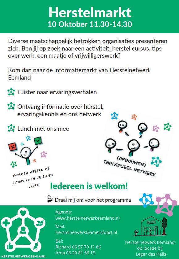 Op 10 oktober, de internationale dag van de mentale gezondheid, organiseert het Herstelnetwerk Eemland deze informatieve markt in Amersfoort.